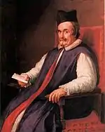Don Cristóbal Suárez de Ribera | 1620 | 207 × 148 | Museum of Fine Arts of Seville | Signed and dated in a fold of clothing difficult to read.[2] This would be a posthumous portrait, as the sitter died in 1618, although Mayer thought that monogram and date could be apocryphal.[3] | 17/19 |
