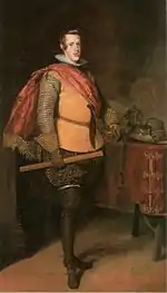 Portrait of Philip IV in Armour | c. 1628 | 57 × 44.5 | Museo del Prado, Madrid | This is considered a fragment of a larger work painted in two stages, reforming the dress and adding the red band in the second.[13] | 35/38 |