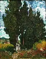 Road with Men Walking, Carriage, Cypress, Star, and Crescent Moon | 17 June 1890 | Van Gogh Museum, Amsterdam | Auvers-sur-Oise | JH 1983 |