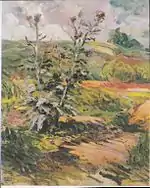 List of works by Vincent van Gogh is an incomplete list of paintings and other works by the Dutch artist Vincent van Gogh (1853–1890). Little appreciated during his lifetime, his fame grew in the years after his death. According to the legend van Gogh sold only one painting, The Red Vineyard, bought for 400 francs by the painter and art collector Anna Boch.[1] Today, he is widely regarded as one of history's greatest painters and an important contributor to the foundations of modern art. Van Gogh did not begin painting until his late twenties, and most of his best-known works were produced during his final two years. He produced more than 2,000 artworks, consisting of around 900 paintings and 1,100 drawings and sketches. In 2013, Sunset at Montmajour became the first full-sized Van Gogh painting to be newly confirmed since 1928.[2][3]