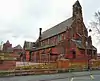 1885 | The school, designed by J. Medland and Henry Taylor, is in red brick with sandstone dressings and a Welsh slate roof with coped gables. It has an apsidal hall and a tall tower with three stages, buttresses, an embattled parapet, and a pyramidal roof. Other features include hipped roofs, decorative panels, one with a date, and lancet windows.[39][62] | II |