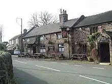 17th century | The building, which originated as three cottages, was altered in the 19th century, and is now a public house and an attached private house. It is in stone and has tile roofs with verge parapets, and two storeys. The two left parts form the public house, the first of which has three bays, a porch, and casement windows. The second part has two bays, a gabled porch with diagonal sides and a Tudor arched entrance, and windows with chamfered mullions. The right part, St Chad's House, is taller, in the ground floor is a bay window with an ogee-shaped roof on the right, and a porch with a hipped roof on the left, above which is a coat of arms. The other windows have chamfered mullions.[8] |