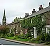 Early 19th century | A terrace of stone cottages with paired gutter blocks and a stone slab roof. There are two storeys, a front of seven bays, the first two bays slightly recessed, and a rear wing of three bays. On the front are two doorways with fanlights, and flat hoods on moulded brackets. In the ground floor of the first bay is a bow window, and the other windows are sashes. In the third bay is a flat-headed carriage entrance, above which is a wrought iron lamp holder.[44] | II |