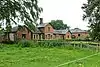 Mid 18th century | The stables and coach houses have been converted for other uses. They are in red brick on a stone plinth with tile roofs. There is one storey and an attic, and an L-shaped plan with two ranges. The ranges contain a carriageway with an elliptical head, windows, doorways, coach house doors, and dormers.[21] | II |