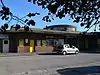 1938 | The railway station has a concrete frame with brick cladding, and is in Modernist style. It is in a single storey, and has a ten-bay front, the third to fifth bays being recessed. The flat roof extends to form a canopy. The entrance is in the seventh bay, and leads to the tiled booking hall, above which is a round drum. The windows have iron frames wit horizontal glazing bars.[51][57] | II |