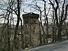 1872 | The chimney serving a textile mill is in sandstone and has a brick lining. It is octagonal in section and about 30 metres (98 ft) high. The chimney is divided into three sections by string courses, and at the top is a decorative, oversailing cap on paired consoles.[25][50] |