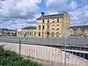 Mid 19th century | The offices, later used for other purposes, are in stone with rusticated quoins, a sill band, a modillion eaves cornice and blocking course, and a slate roof. There are three storeys and a symmetrical front of five bays. The central doorway has a semicircular fanlight, a moulded surround with two rusticated orders, the outer vermiculated. The ground floor windows are round-arched with moulded voussoirs, keystones and panelled aprons, the windows in the middle floor have segmental heads, moulded surrounds and keystones, the central window with a pulvinated frieze and segmental pediment, and the top floor windows have flat heads and moulded surrounds.[42] |