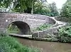 1804 | A road and roving bridge over the canal that has been subsequently widened. The original stone bridge has an elliptical arch, and was widened to the north in the mid-19th century with a truncated elliptical arch with a keystone, and in the 20th century with a footpath bridge. The bridge was widened to the south later in the 19th century in brick. The towpath bridge has a spiral walkway, cast iron parapet walls, and a flat deck in stone-slate.[12] | II |