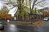 1920 | The war memorial is in a circular garden surrounded by a stone wall. It has a two-stepped square base, a plinth, and a granite obelisk. There are inscriptions on the front of the plinth and on the upper step of the base, and the names of those lost in the two World Wars are included.[42] | II |