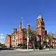 1883–85 | The town hall, which was extended in 1913, is in red brick with sandstone dressings and slate roofs. It has two storeys and a basement in stone, and the main front on Market Street has eleven bays, the outer bays projecting forward as pavilions with hipped roofs and finials. The entrance has a round-headed doorway that has wide pilasters with fluted capitals, an entablature with a decorated frieze, and brackets carrying a balustraded balcony. The bay rises to form a tower with clock faces and an octagonal cupola. Other features include oriel windows.[35][36] | II |