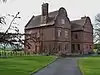 c. 1870 | A gazebo in red brick with dressings in grey brick and stone, and a roof of red and grey tiles. It has a hexagonal plan, and two storeys with round-arched windows in the upper storey under small gables. There is a pyramidal roof with a decorative cast iron weathervane.[3][21] |