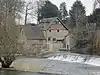 17th century | The mill is built in stone with some timber framing and brick, and has a tile roof. There are two storeys and an attic, and an L-shaped plan. Wooden steps lead to the upper floor, most windows are mullioned, and there are two hipped gable dormers. The weir is of medieval origin, and it has a horseshoe shape.[13][14] | II |