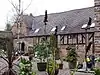 Early 17th century | The house has been much altered. It is mainly roughcast with some exposed timber framing, and has a stuccoed 18th-century wing, and a tile roof. There are two storeys and an attic, a front of five bays, and two rear wings, forming a U-shaped plan. Some of the windows are mullioned and transomed, there are Venetian windows at the rear and in the east front, some windows are in Gothic style, and other windows are modern. The doorway has panelled pilaster and an entablature with a pediment.[10][11] | II |