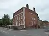 Late 17th century | The house was extended to the rear in the late 18th century. It is in red brick on a plinth, and has a plat band, a moulded eaves cornice, and a tile roof with parapeted gable ends. There are two storeys, and attic and a basement, a front of five bays, the middle bay projecting forward, and a three-storey rear wing. A flight of seven semicircular grey sandstone steps leads up to the central doorway that has fluted pilasters, a radial fanlight, an entablature, and a triangular pediment. The windows are sashes. In the attic are two dormers with triangular pedimented gables, flanking a central circular parapeted gable containing a sash window.[6][36] | II* |