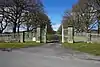 18th century (probable) | The square gate piers are in rusticated stone, and each has a moulded plinth, and a bracketed frieze to the capping. The wrought iron gates are ornamental, and above is an elaborate overthrow with anthemion decoration in the centre, and gold leaf detailing. These are flanked by low quadrant walls ending in rectangular piers with bracketed coping.[18] | II |