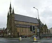 1793 | This Roman Catholic church was built to replace a smaller church on the site, it was expanded and remodelled in 1878, and its exterior was recased ten years later. It is built in brick with terracotta cladding and dressings, and has a slate roof; it is in the style of an Italian basilica. It consists of a nave, aisles, a baptistry, chapels, and an apse at the east end. Inside are large Corinthian columns.[33][34][35] | II* |
