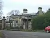 c. 1840 | The lodge at the entrance to the drive of Shenstone court, since demolished, is in sandstone, and has a blocking course, a dentiled cornice, and a flat roof. There is a single storey and three bays, the central bay projecting with three sides, and containing sash windows. Each outer bay has an Ionic colonnade, behind which is a screen wall.[2][48] | II |
