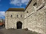 The original gatehouse was a simple affair, built in the late 13th century and known as the Saltmarsh Gate, as it led to marshlands outside the town. Being close to God's House Hospital, which had been founded in 1168 by Gervase le Riche as a refuge for travellers, the gateway became known as the God's House gateway. Scheduled as an ancient monument. | ||
