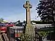 1923 | The war memorial stands in a square enclosure on a concrete platform surrounded by metal railings, and is in sandstone. It consists of a Celtic cross with knotwork design on the cross head, on a tapered shaft and plinth, and a base of two steps. There is an inscription on the lower part of the shaft, and on the plinth and on the top step are the names of those lost in the two World Wars. There is also a marble plaque commemorating the anniversaries of VE and VJ Days.[27] | II |
