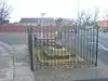 c. 1300 | The oldest part is the base, and the cross was added in 1977 to celebrate the Silver Jubilee of Elizabeth II. The sandstone base is square with an incised cross. On the base is a granite cross in the centre of which is a quatrefoil containing a IHS monogram. On the reverse is a plaque. The structure is also a scheduled monument.[4][5] |