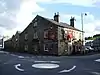1781 | A public house in sandstone with quoins and a slate roof, in two storeys with an attic, and with a front of three bays. The windows are sashes with plain surrounds, and in the right bay is a single-storey canted bay window. The central doorway has an architrave and a pediment on console brackets. In the left three-bay gable wall the outer ground floor windows have round heads and keystones; the central window has been converted from a doorway and has an architrave, pilasters, and a segmental pediment. Under the gable is a re-used 17th-century mullioned window, and a plaque.[9][23] | II |