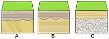 Geological correlation[7] is the main tool for reconstructing the geometry of layering in sedimentary basins. The lithological correlation is a procedure, decisive what layers (strata) in geological cross-sections located in different places belong to the same geological body now (or belonged in the past).[8] The identification is based on comparison of physical and mineralogical characteristics of the rocks, and on general assumptions known as the Steno's principles: