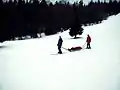 Patient transport sled managed by skiers