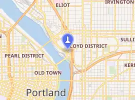 The copper and steel sculpture of a crown resting on it side was installed in 1995 at the intersection of Northeast Multnomah Street and North Interstate Avenue, south of the Moda Center in Portland's Rose Quarter.[2] Funded by the City of Portland's Percent for Art program, the crown measures 15 feet (4.6 m) x 17 feet (5.2 m) x 12 feet (3.7 m) and is partially buried.[3][4]