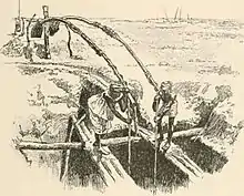 Salt panning is a crucial seasonal activity in the Rann of Kutch, producing the majority of India's inland salt. During the monsoon season, the underwater table of the Kutch is filled with saltwater. After the water recedes in October, salt workers temporarily settle and use diesel pumps to pump the saltwater into fields. Then, the natural climate conditions allow evaporation of the water, leaving only the salt crystals. Salt panning workers face severe health issues due to working in the harsh conditions in the fields continuously for 6–7 months.[7] In 2019, as a means of financially supporting the salt pan workers and promoting a move from diesel to solar-powered pumps, the government of Gujarat allowed the state to purchase excess solar power generated during the off-season. Using solar-powered as opposed to diesel pumps can reduce the cost of salt production by one-third.[8]