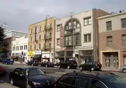 The current site of Parker Center, the Los Angeles Police Department's former headquarters, was the original site of the Nishi Hongwanji Buddhist temple.[8] The south edge of the block where Parker Center stands was part of the First Street business strip of shops. The warehouses and new condominiums to the east of Little Tokyo were once residential areas of the district. The Weller Court mall was opposed by some people in the community because it redeveloped a strip of family-owned small businesses. Community activists established First Street as a historic district in 1986. In 2004, they helped reopen the Far East Cafe, an acknowledged community hub.
