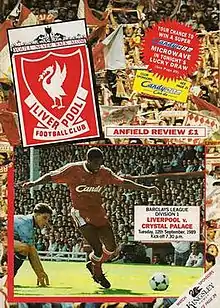 On 12 September 1989, Liverpool faced Crystal Palace in a First Division fixture at Anfield, during the 1989–90 season. Crystal Palace were newly promoted to the Division, while Liverpool had been narrowly pipped to the League title by Arsenal in the previous season. Liverpool won the match 9–0,[1] recording their biggest ever top-flight win,[2] and inflicting Palace's heaviest ever defeat.[3] Eight different players scored for Liverpool, the first time this has happened for the same club in English football history [4] - until Manchester United’s 9-0 defeat of Southampton on 2 February 2021.