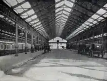 In recent years, plans were unveiled for the transformation of the station into a Transport Interchange, which would involve the demolition of the disused part of the frontage and the introduction of new passenger facilities. Following the provision of funding, reconstruction began in 2013 and the £5.2 million scheme was completed in the summer of 2014.[1] The work included a 130 space car park (on the site of the former Platforms 4 & 5), a glazed concourse, a bus interchange, new taxi rank, and a shop/cafe. There are also a new entrance and improvements to the platforms.