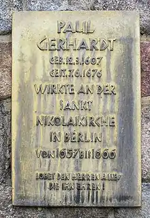 - Memorial plaque for Paul Gerhardt at the Nikolaikirchplatz, Berlin-Mitte.