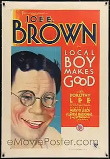 Local Boy Makes Good is a 1931 American Pre-Code comedy film directed by Mervyn LeRoy and written by Robert Lord, Raymond Griffith and Ray Enright.[2] The film stars Joe E. Brown, Dorothy Lee, Ruth Hall, Edward Woods, Edward Nugent and Wade Boteler. The film was released by Warner Bros. on November 27, 1931.[3][4]
