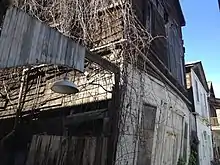 The population of Locke swelled with the growing season and harvest. Most of the reclaimed land in the Sacramento-San Joaquin Delta including Locke was used for cash crops, including asparagus, potato, sweet potatoes, white beans, pears, and apples.[4] There would be as many as 1000 to 1500 Chinese people living in Locke. Farmhands shared rooms in the boarding houses. Chinese residents living in the homes behind Main Street also took in Chinese farm laborers. Chinese immigrants in Locke started patterns in California agriculture that are continued today in the Sacramento-San Joaquin region, including contracted labor, tenant farming, sharecropping, and the piece wage system.[4] A community garden existed in the back and there was a special oven to make roast pigs on Sundays. Chinese communities congregated in solidarity under difficult labor and social conditions fostered by legislation such as the Chinese Exclusion Act, creating community gardens that maintained cultural relevancy in the form of growing Chinese cabbage, snow peas, leafy vegetables, winter melon, and tomatoes.[4] Baptist missionary Dr. Charles Shepherd would bring in his Chungmei home boys for the pear harvest at the end of July. Life in Locke had a great deal of accord. The Chinese mothers took care of each other's children when another mother had to go to work at the cannery across the River Road next to the riverboat docks of the Sacramento River.[7]