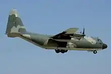 In the Indo-Pakistani War of 1965, the No. 6 Transport Squadron of the Pakistan Air Force modified its C-130Bs for use as bombers to carry up to 20,000 lb (9,072 kg) of bombs on pallets. These improvised bombers were used to hit Indian targets such as bridges, heavy artillery positions, tank formations, and troop concentrations.[41][42][43] Some C-130s flew with anti-aircraft guns fitted on their ramp and apparently shot down some 17 aircraft and damaging 16 others.[44]