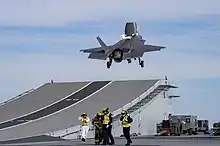Speculation mounted in 2009 that the UK government would switch from the F-35B to the F-35C model, with its greater range and payload. The UK would require fewer F-35Cs and save about $25 million for each aircraft ordered.[60] In October 2010, press reports suggested that the Conservative-Liberal Democrat coalition government were considering reducing the order for the F-35 from 138 to an unspecified but lower number as of the 2010 Strategic Defence and Security Review. This was confirmed by a MoD spokeswoman in 2012.[61] The proposed cuts would also close RAF Lossiemouth, chosen as the main operating base for the F-35.[62] On 19 October 2010 Prime Minister David Cameron announced in the Strategic Defence and Security Review that the UK would procure an unspecified number of F-35Cs, to fly from a Queen Elizabeth class aircraft carrier, instead of the F-35B. This change would require the aircraft carrier to be equipped with catapults and arresting gear.[63]