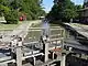 The lock gates were originally made of oak in the traditional mitre pattern with balance beams and each gate had a single large wooden sluice drawn up by a vertical screw.[1] The introduction of electric and hydraulic systems for both the lifting of the sluices and the opening of the gates has seen the removal of the balance beams and modern gates are of metal construction.