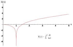Here, ln denotes the natural logarithm. The function 1/(ln t) has a singularity at t = 1, and the integral for x > 1 is interpreted as a Cauchy principal value,