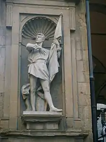 In the corner niches statues of famous Florentines were intended to be placed, but only three were made during the 18th century: Michele di Lando, Giovanni Villani, and Bernardo Cennini.[2]