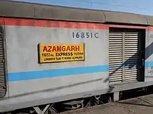 Lokmanya Tilak Terminus - Azamgarh Weekly Express is an express train of the Indian Railways connecting Lokmanya Tilak Terminus in Maharashtra and Azamgarh of Uttar Pradesh. It is currently being operated with 11053/11054 train numbers on a weekly basis.[1][2]