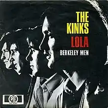 "Lola" was released as a single in 1970.[14] In the UK, the B-side to the single was the Kinks Are the Village Green Preservation Society outtake "Berkeley Mews"[15] while the Dave Davies-penned "Mindless Child of Motherhood" was used in the US.[14] It became an unexpected chart smash for the Kinks, reaching number two in Britain[2] and number nine in the United States.[3] The single also saw success worldwide, reaching the top of the charts in Ireland, New Zealand, and South Africa, as well as the top 5 in Germany, Austria, Belgium, and Switzerland. The success of the single had important ramifications for the band's career at a critical time, allowing them to negotiate a new contract with RCA Records, construct their own London Studio, and assume more creative and managerial control. In a 1970 interview, Dave Davies stated that, if "Lola" had been a failure, the band would have "gone on making records for another year or so and then drifted apart".[16]