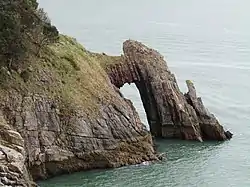 The arch and the area in the vicinity including the long abandoned Dyer's Quarry is a location well-liked for coasteering, due to its secluded location close to Torquay, and there are many possible jumps, some of which are said to be the best in the area.[3]