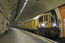 London Underground battery-electric locomotives are battery locomotives used for hauling engineers' trains on the London Underground network where they can operate when the electric traction current is switched off. The first two locomotives were built in 1905 for the construction of the Great Northern, Piccadilly and Brompton Railway, and their success prompted the District Railway to buy two more in 1909, which were the only ones built to the loading gauge of the subsurface lines. Following this, a number of battery vehicles were built by converting redundant motor cars, with the batteries placed in the unused passenger compartment. One exception to this was made by the City and South London Railway, who used a trailer car to hold the batteries, and wired them to a separate locomotive.
