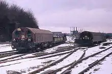 The construction of the Jubilee line and the Heathrow extension of the Piccadilly line required yet more works trains, and eleven more locomotives were ordered in 1972, with delivery in 1973. They were built at Doncaster Works by British Rail Engineering Limited. The motors were refurbished from redundant District line stock, but the bogies were new. Although based on the standard Z-type bogie used since the 1930s, they incorporated roller bearings, rather than white metal axleboxes and suspension bearings. Three of the locomotives were built to replace the three metadyne vehicles, but those were not actually withdrawn until 1977.[10]