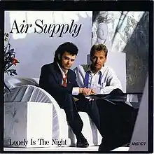 "Lonely Is the Night" is a song by Australian-British band Air Supply, released in 1986, as the lead single from their ninth studio album, Hearts in Motion (1986). The ballad was written by Albert Hammond and Diane Warren, while John Boylan produced it. "Lonely Is the Night" was a minor success in the United States, reaching number 76 on the Billboard Hot 100 and 12 on the Adult Contemporary chart.