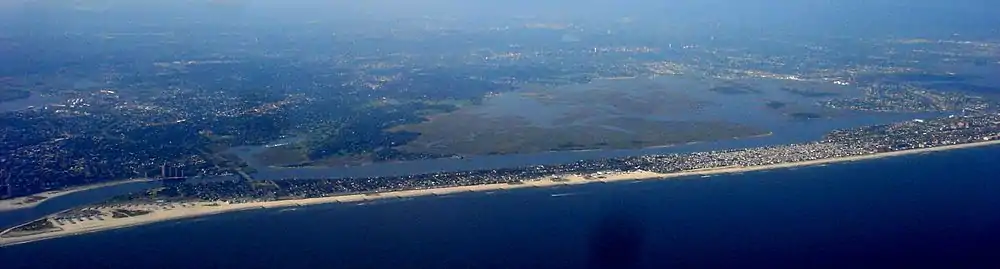 ![]() Aerial photograph of Long Beach, NY and environs from west-by-southwest. | |