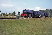 In February 1956, the railway was used to stage a train derailment for the BBC programme Saturday Night Out, when ex-SR King Arthur class locomotive 30740 "Merlin" and three coaches were pushed down an incline onto a specially canted section of track.[2]