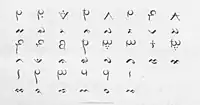 Lontara Bilang-bilang is a cipher of the Lontara script, currently used for Buginese poetry. This script uses the Eastern Arabic numerals-inspired letterform to substitute the Lontara script, as a way to hide it to the Dutch at the time.[1] It was an adaptation to a similar ciphers of the Arabic script that has been used in South Asia around the 19th century.[2][3]