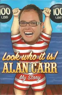 Look Who It Is! is the autobiography of British comedian and television presenter Alan Carr. It details his life from growing up in Weymouth to presenting The Friday Night Project. In the book, Carr recounts how he grew up in the shadow of his father, Graham Carr, and was therefore expected to grow up to be a great football player, despite his childhood "puppy fat". The book laments on his schooldays - he was picked last for the football team when the other students found out his lack of talent and his father forcing him to refuse to communicate with a friend because he was apparently "gaying him up". Carr also tells the story of how puberty left him with "big teeth" and a camp voice.